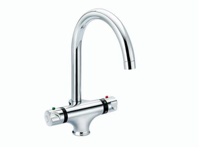 恒温厨房龙头,温度可以按照要求设定,采用2个恒温阀芯,一个控制冷水,一个控制热水,互相匹配,效果最好。阀芯的温控棒采用日本顶级kettle温控棒,温度精确,精确度 正负0.2度