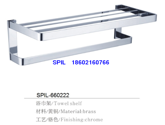 双层毛巾架/Towel shelf 点击放大 公司名称:上海宜臻实业有限公司 产品型号:660222 产品简介:双层浴巾架,黄铜材质,抛光镀铬 详细说明
