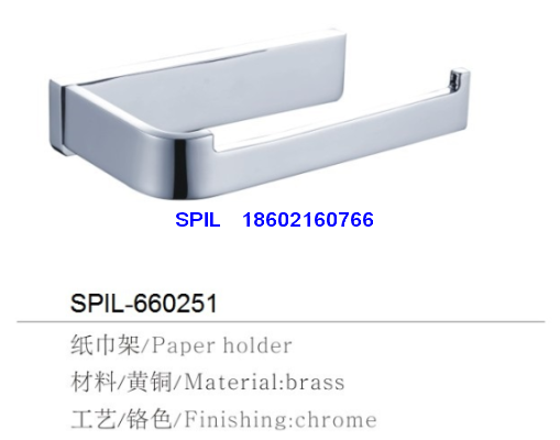 纸巾架/Paper holder 点击放大 公司名称:上海宜臻实业有限公司 产品型号:660251 产品简介:纸巾架,黄铜材质,抛光镀铬 详细说明